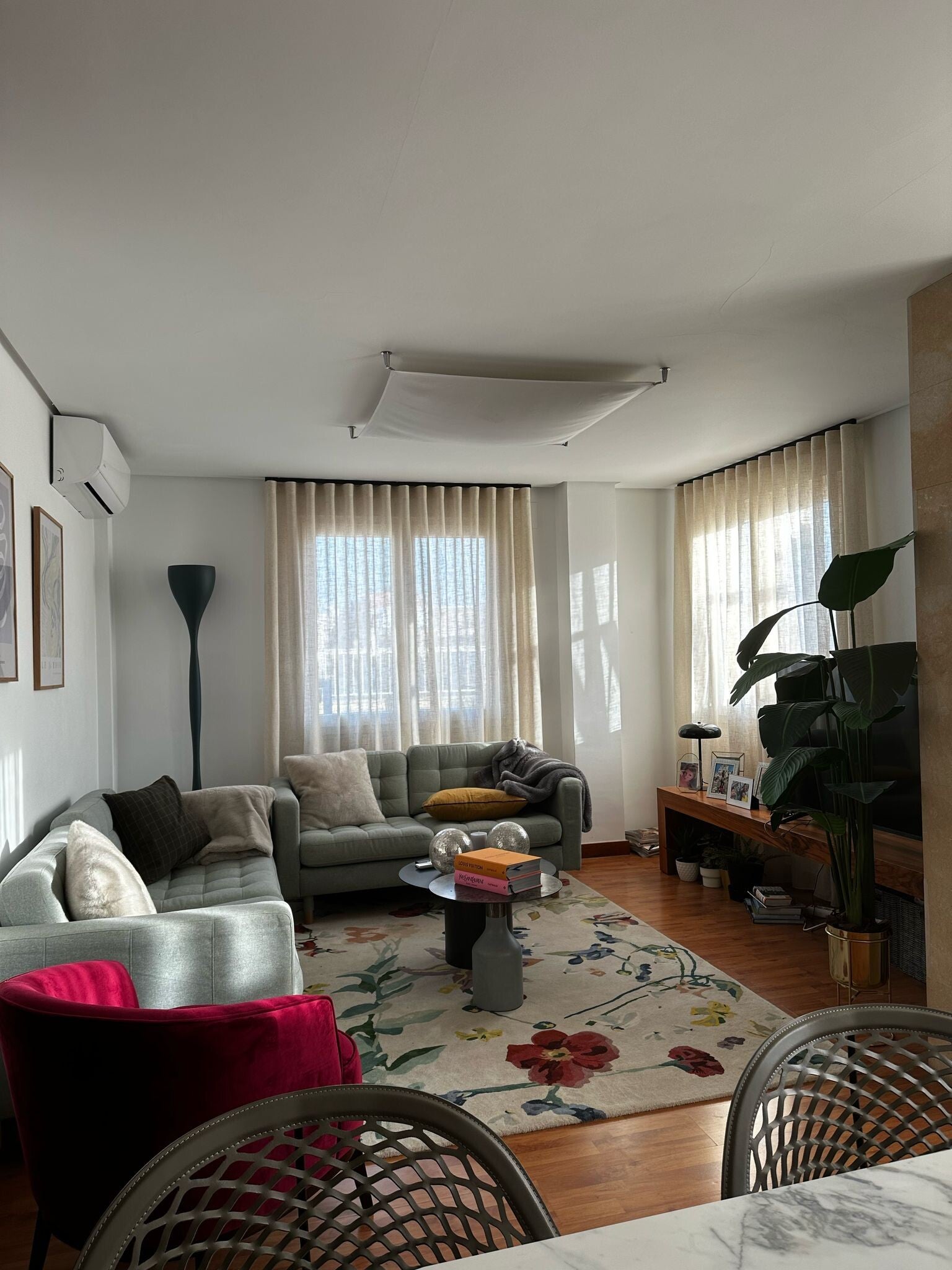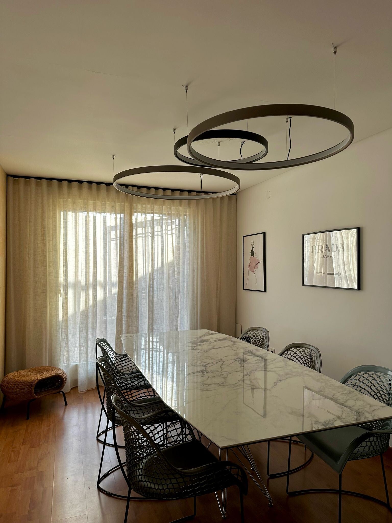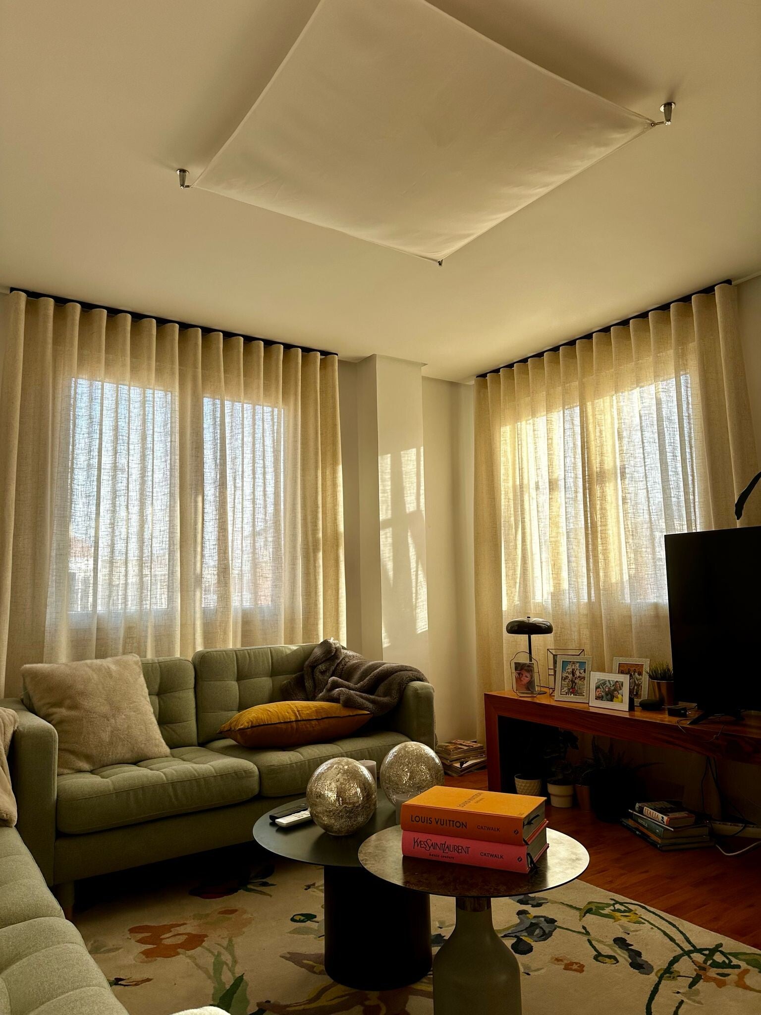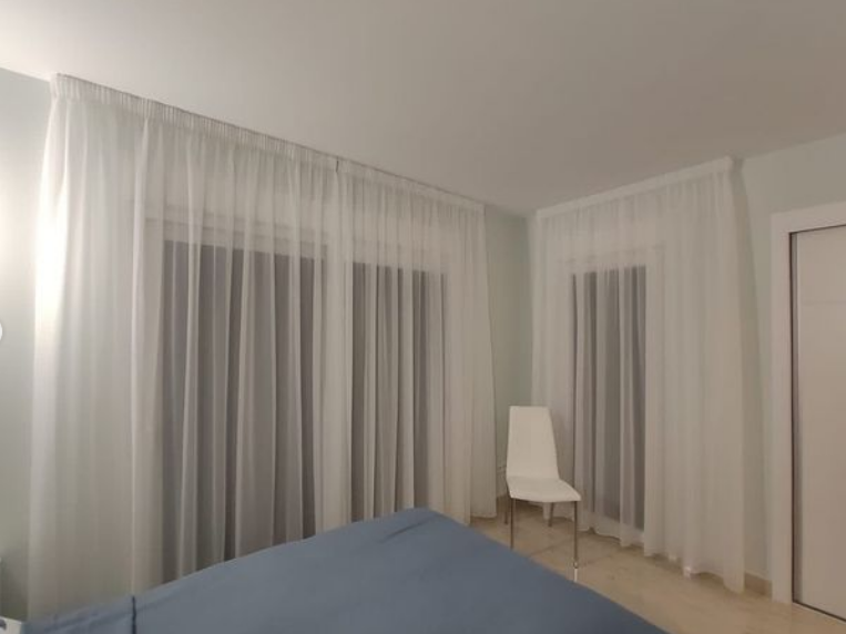 Visillo beige en onda perfecta con riel decorativo cuadrado negro